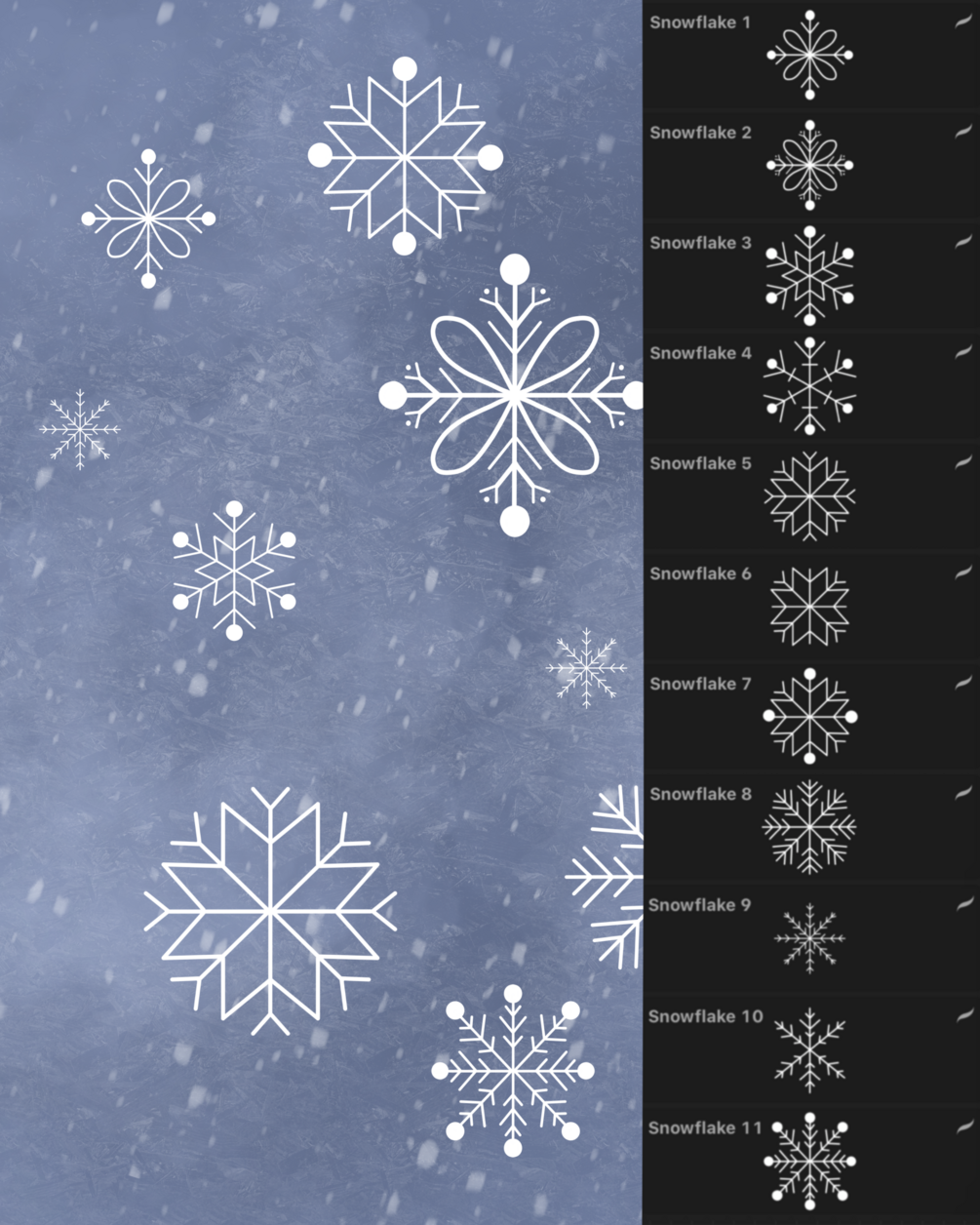 You'll get 11 snowflake stamp brushes